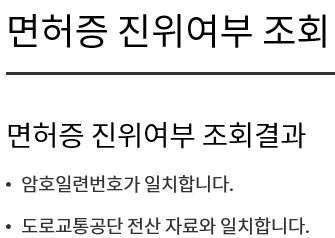 운전면허증 진위여부조회릘 클릭합니다.