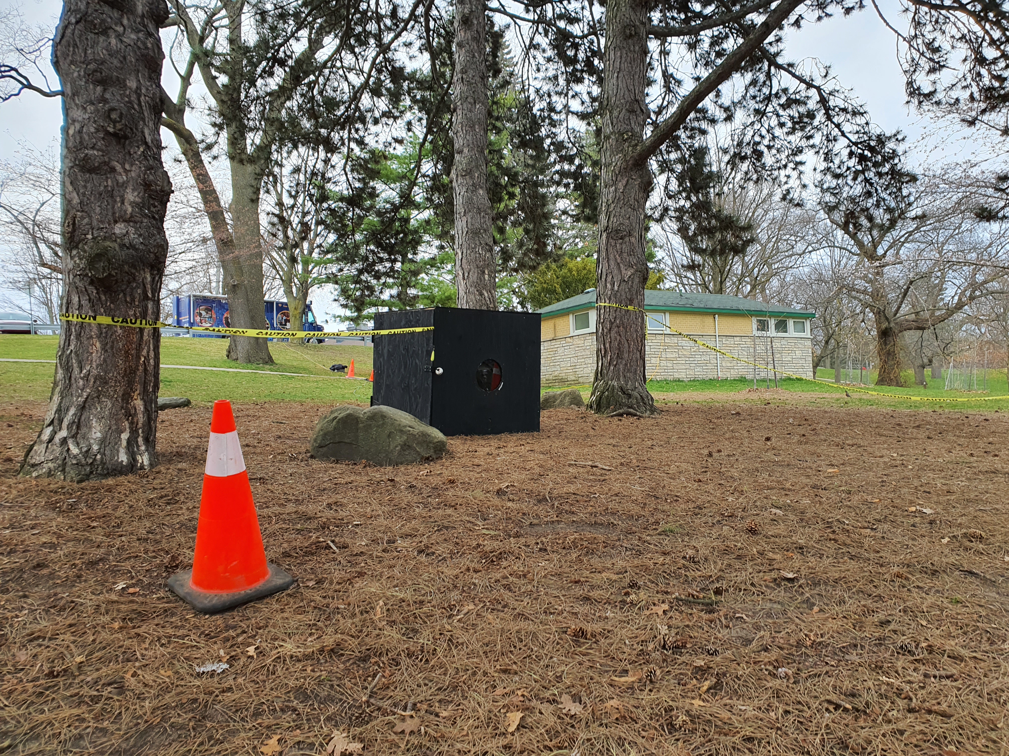 뭔지는 모르겠는데 시설물이어서 통제를 한 것 같습니다.