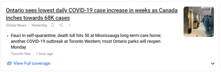 Fauci 자가력리 중;미시소거 요양원의 사망자 수가 50명에 이르렀다.;또 다른 코로나 19가 토론토 웨스턴 병원에서 발생했다.;대부분의 온타리오 공원은 월요일에 다시 열릴 것이다.