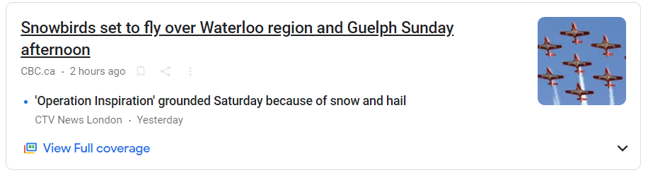 Snowbirds는 일요일 오후에 워털루와 궬프 지역위를 날을 준비가 되었다.