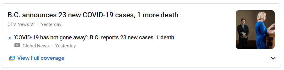 코로나 19는 사라지지 않았다 : B.C. 23개의 새로운 사례, 1사망자 발표.